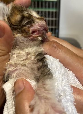 | 治療後の経過など カラスに襲われているところを保護。すぐに病院にいき処置をしてもらう。銀河はあごと舌をつつかれてなくなっており、江は足の裏4本に火傷をしており危険な状態でした。2頭は外傷処置と点滴、内服薬、外用薬などの治療のため通院しましたが、8月14日に銀河は虹の橋を渡りました。江の火傷は治療のお陰で次第に良くなり完治いたしました。2023年1月28日、正式譲渡となりました。 | ||||