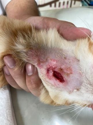 | 治療後の経過など 顎を気にしていたので見てみると、怪我をしていました。消毒をした後、フィプラストスプレーをし、抗生剤注射をしました。フィプラストスプレーがよく効き思ったよりも早く完治いたしました。 | ||||